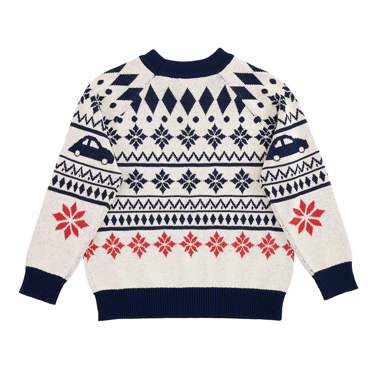 Ob zu Weihnachten, zum Nikolaus oder einfach als kleine Aufmerksamkeit in der kalten Jahreszeit – dieser Strickpullover ist ein passendes Geschenk für Kinder. Das winterliche Design in Weiß mit blauen Bündchen wirkt freundlich und zeitlos. Ein Knopf mit VW Logo am Saum setzt einen dezenten Akzent. Material: 100% Baumwolle