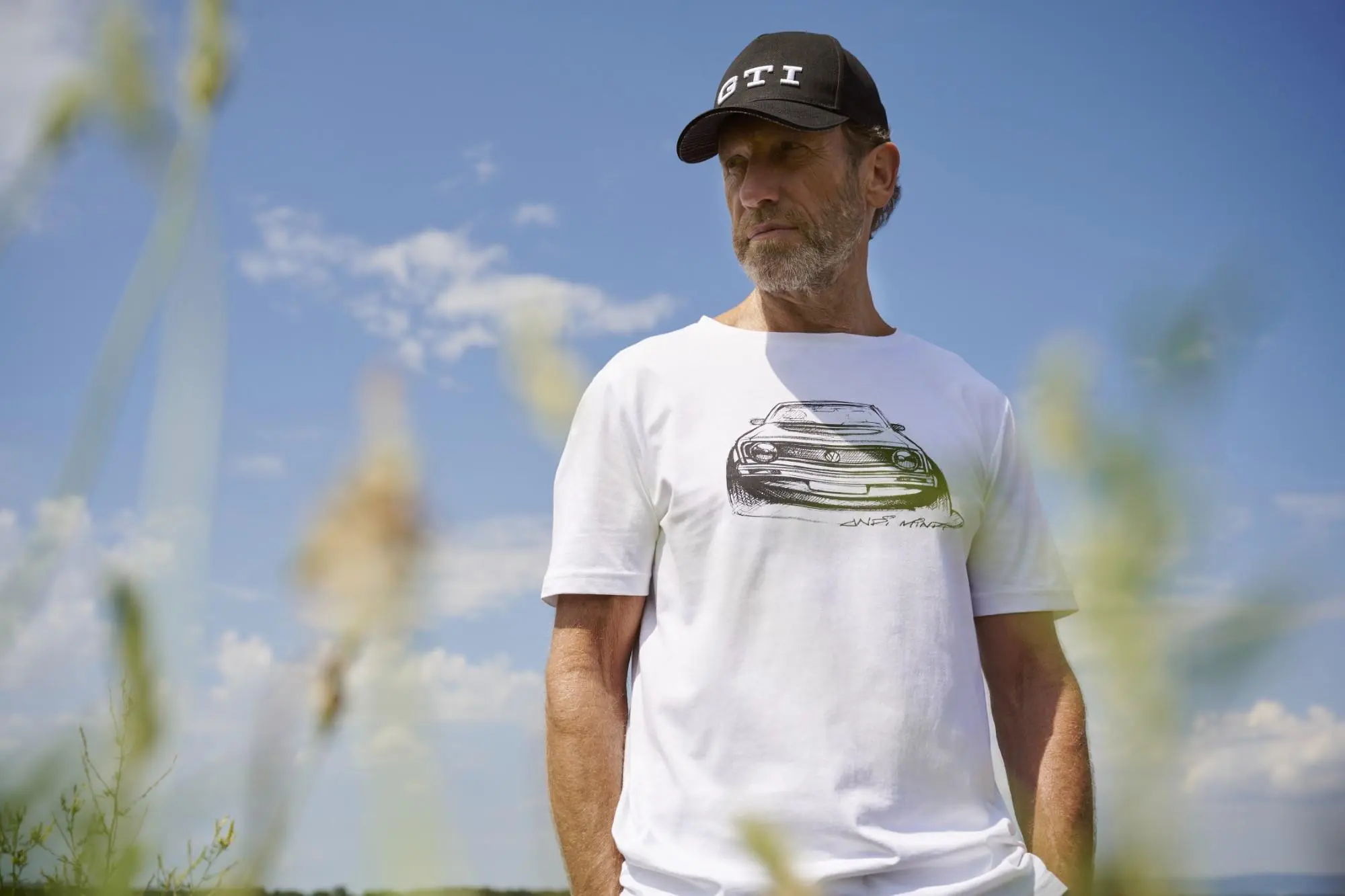 Zeigen Sie Ihre automobile Leidenschaft mit dem Rundhals-T-Shirt im GTI Design. Die Vorderseite ist mit dem Design-Skribble des Golf 1 GTI von dem Volkswagen Designchef Andreas Mindt bedruckt. Auf der Rückseite befindet sich das "GTI FAN FEST 2024" Logo.