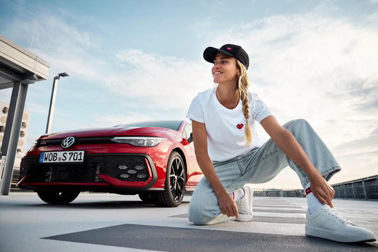 Zeigen Sie, dass ihr Herz für den GTI schlägt. Das weiße GTI T-Shirt mit Rundhalsausschnitt hat ein rotes GTI-Herzsymbol auf der Brust. Im Nackenbereich ist der Halbmond mit dem GTI Karodesign "Scale Paper" gestaltet.