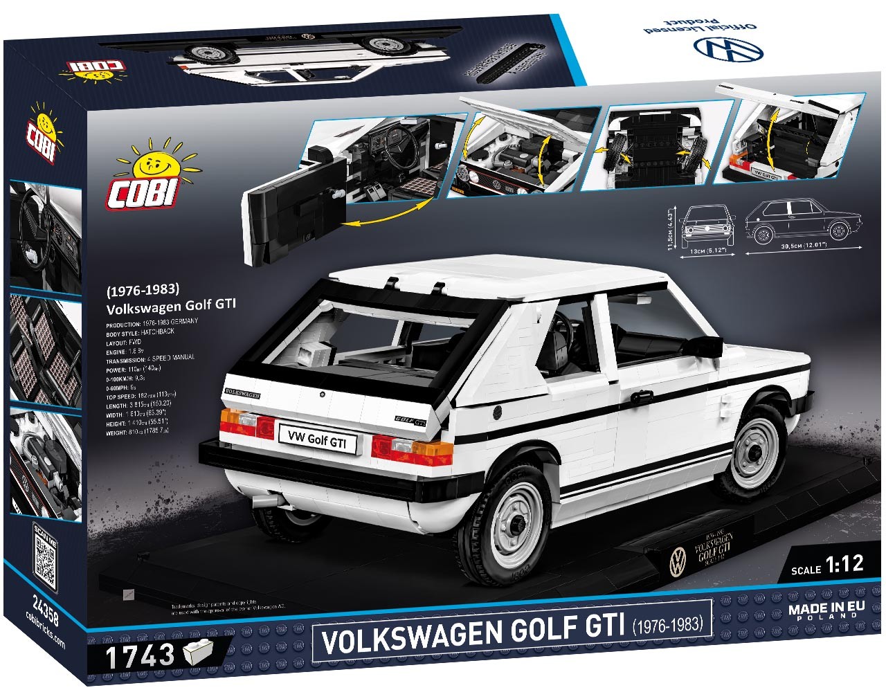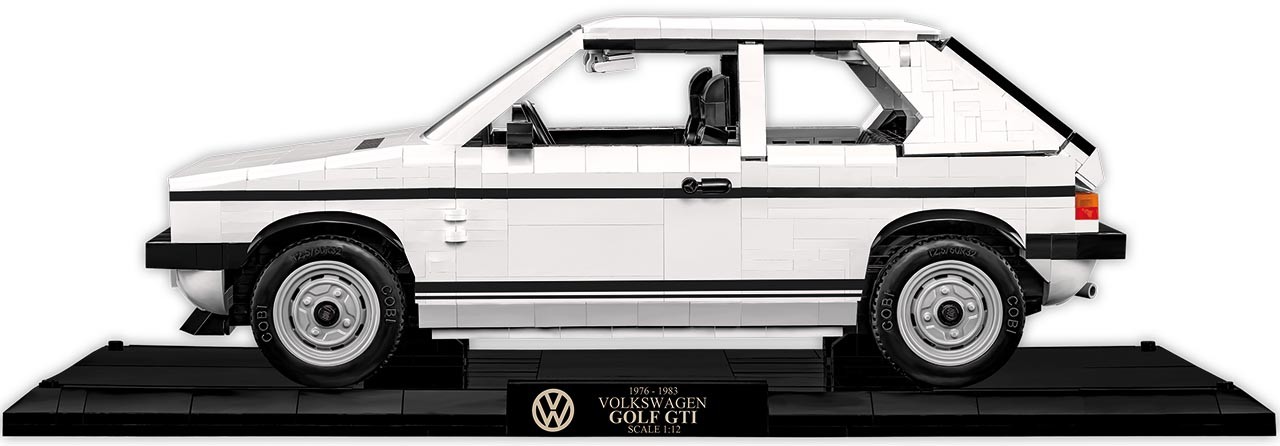 Bauen Sie Ikone für Ikone: Mit diesem detailreichen Bausatz des Golf 1 GTI im Maßstab 1:12 entsteht ein Modell mit weißer Karosserie, Präsentationsständer und Modellnamensschild. Türen, Kofferraum und Motor lassen sich öffnen und geben den Blick auf fein gestaltete Details frei.