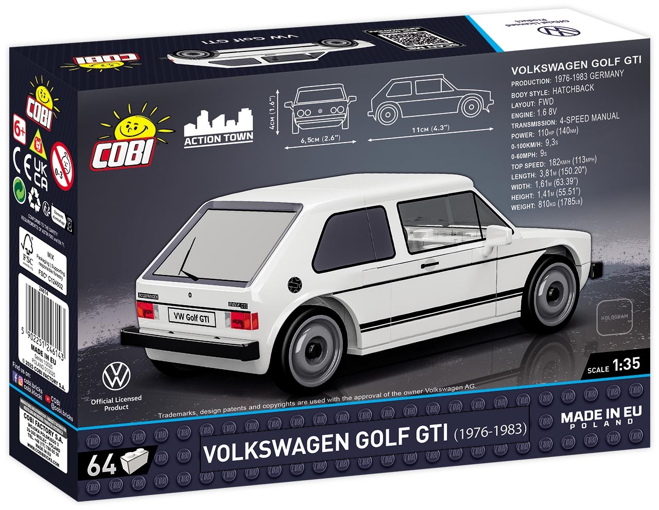 Bauen Sie den legendären Golf 1 GTI als detailreiches Miniaturmodell mit weißer Karosserie im Maßstab 1:35.
