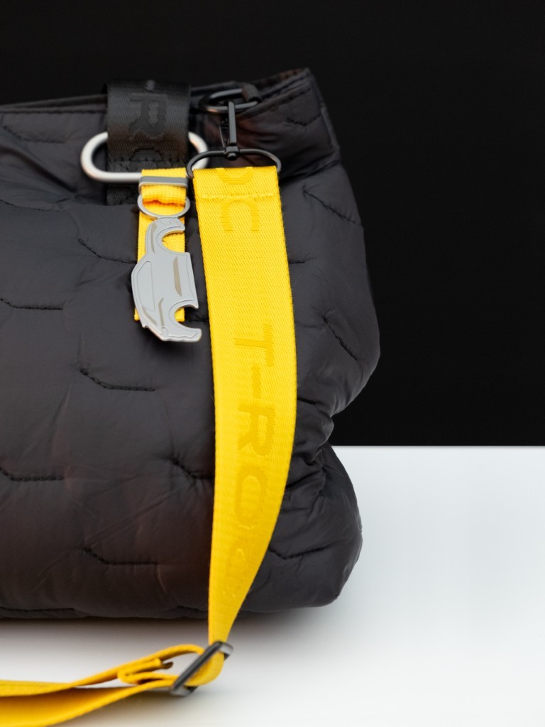 Recyceltes Polyester, leicht und robust. Kurze & lange Trageriemen, plus abnehmbarer Riemen in Canary Yellow. Magnetverschluss, Innenfach mit Reißverschluss und T-Roc Weblabel.