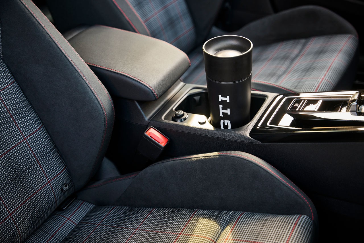 Der schwarze Thermobecher im GTI Design mit weißem GTI-Logo hat einen patentiertem Drehverschluss mit ergonomischem 360° Trinkrand für auslaufsicheren Transport, hygienische und intuitive Bedienung und leichte Reinigung. Der Thermobecher ist aus Edelstahl gefertigt und der Deckel besteht aus Kunststoff.