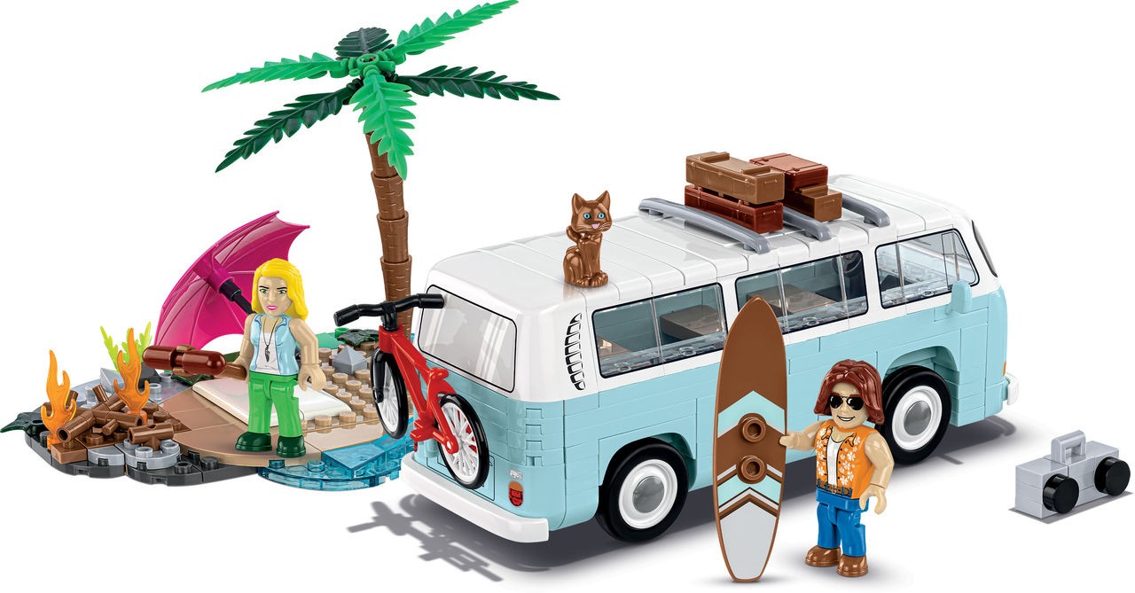 Mit dem „Volkswagen T2b Strand“ Bausatz holen Sie sich ein Stück Urlaubsstimmung im Maßstab 1:35 nach Hause. Aus 292 Bausteinen, zwei Figuren und einer kleinen Katze entsteht ein 15 × 6 × 6?cm großes Modell, das den kultigen T2b im Strandlook detailreich darstellt und sich dank klarer Symbol-Bauanleitung leicht zusammensetzen lässt. Alle Teile sind vollständig mit gängigen Bausteinsystemen kompatibel und werden in der EU gefertigt – ideal zum Sammeln, Spielen oder Verschenken an VW-Fans.