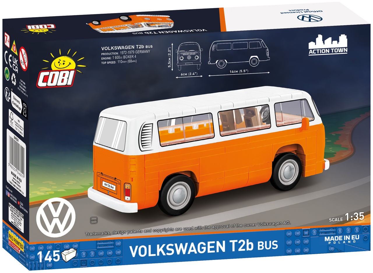 Der „Volkswagen T2b“ Bausatz bringt den beliebten Klassiker im Maßstab 1:35 als detailreiches Miniaturmodell zu Ihnen nach Hause. Aus 145 Bausteinen entsteht ein 14 × 6 × 5,5?cm großes Modell, das sich dank der bebilderten Bauanleitung leicht zusammensetzen lässt und vollständig mit anderen Bausteinsystemen kompatibel ist. Hergestellt in der EU, eignet sich das Set ideal zum Sammeln, Ausstellen oder Verschenken – perfekt für VW-Fans und Modellbau-Begeisterte.